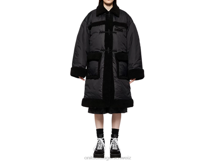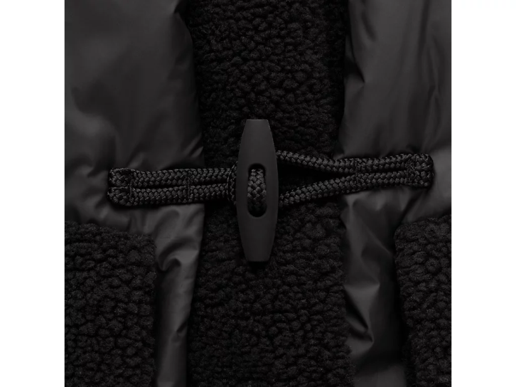 ein gepolsterter Dufflecoat, der leicht und dennoch voluminös ist. Dieser gepolsterte Dufflecoat besteht aus Thermolite, einem Material mit hervorragender Feuchtigkeitsspeicherung, das ihn leicht und bequem macht. Boa-Fleece-Details ergänzen die voluminöse Kontur für einen trendigen Look.