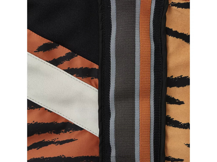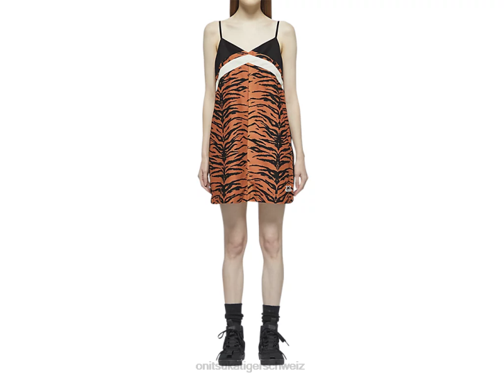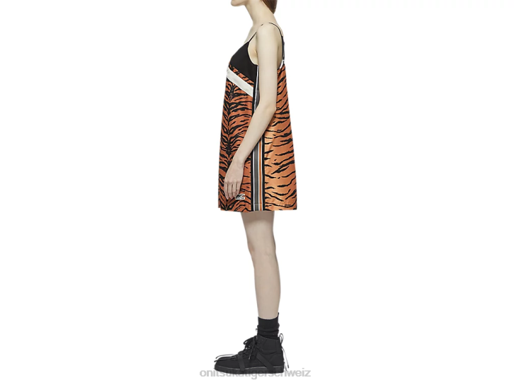 ein sportliches, avantgardistisches Camisole-Kleid mit Tigermuster. Dieses sportliche Camisole-Kleid trägt ein Tigermuster für einen Hauch von Avantgarde, der der Schlüssel zu einem frischeren Look in dieser Saison sein könnte. und das zweifarbige Design des Brustbereichs fällt ins Auge und bindet das gesamte Teil zusammen. Tragen Sie es allein, um einen gesunden, sportlichen Eindruck zu vermitteln, oder kombinieren Sie es mit einer Strickjacke, um einen eleganteren Eindruck zu hinterlassen.