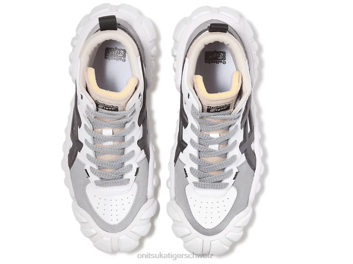 Onitsuka Tigers High-Tops „Level-Up“ in unserem Dentigre ll-Modell. Der Dentigre ll-Stil beginnt mit einer klobigen, robusten Außensohle und trägt unsere Onitsuka-Tigerstreifen auf einem Mixed-Media-Obermaterial mit Schuhzunge aus Filz. Grautöne verleihen diesem ohnehin schon kraftvollen Modestatement Struktur und Dimension.