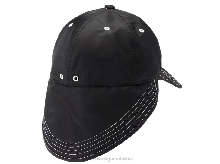 Eine Kappe aus glänzendem Nylongewebe mit genähtem Design. Die Krempen vorne und hinten verleihen Alltagsoutfits einen einzigartigen Charme.